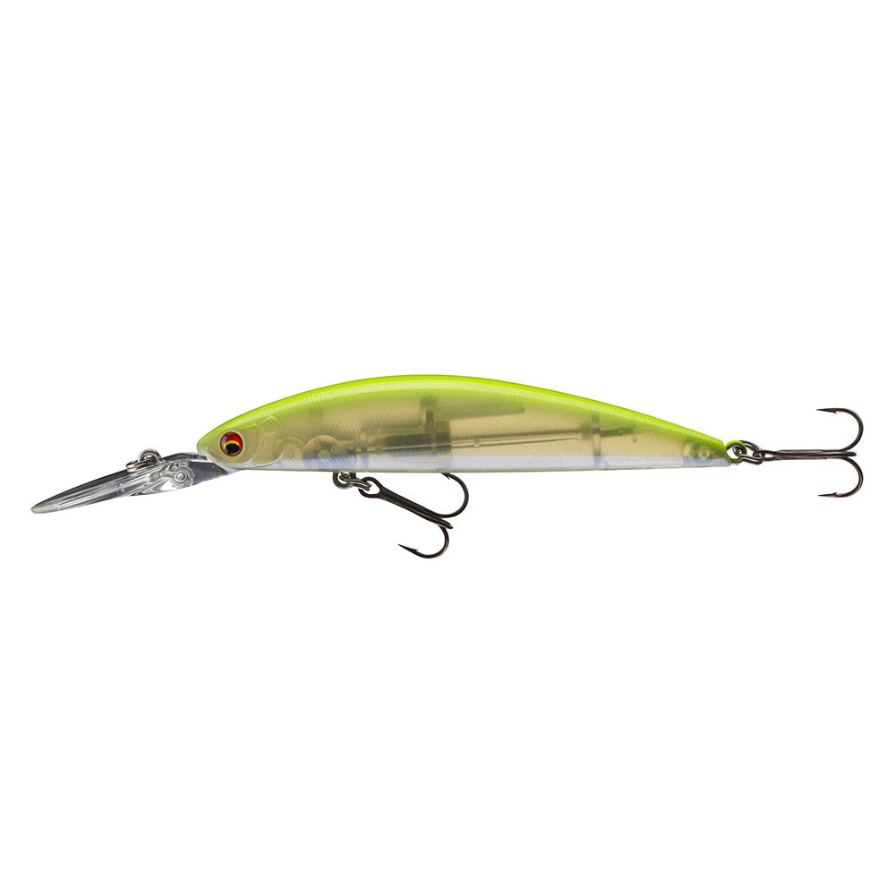 By the patented „Mag Lock Silent Weight Oscillation System“, exceptional casting distances can be achieved. The special construction of the body and the diving lip makes this lure also suitable for fishing in stronger currents and rivers.