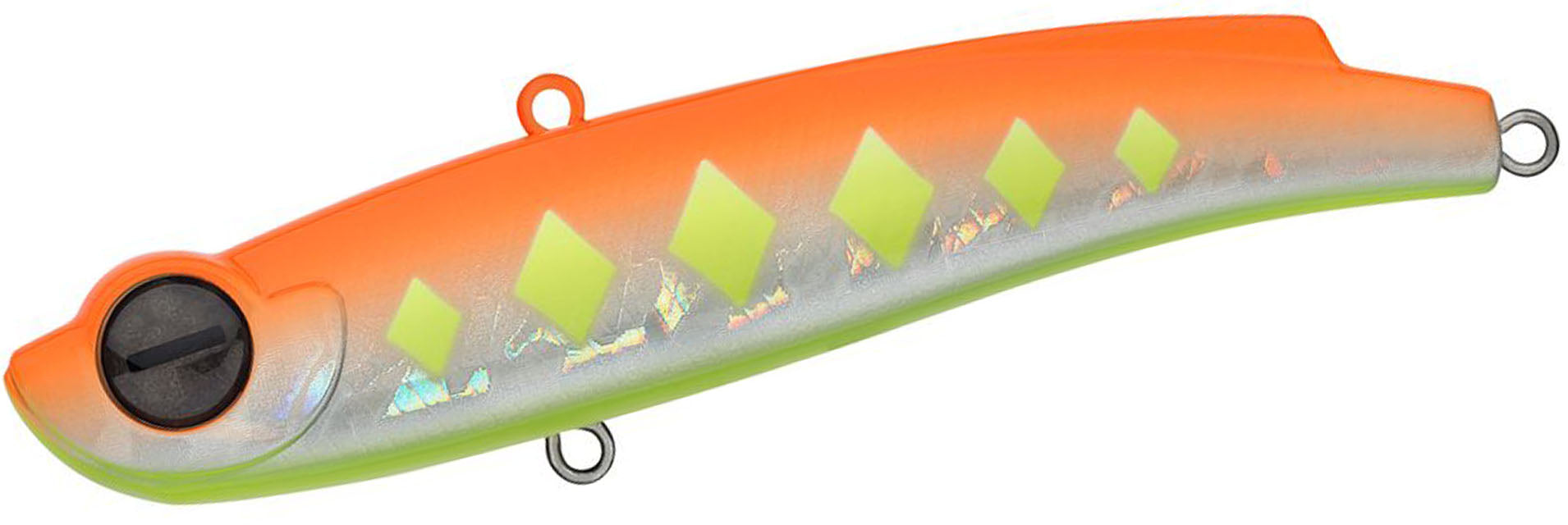 Frapp Jiggle HV is a vibration bait ( VIB) designed for vertical fishing with quiet "mormyshing" and stretches and tosses. Frapp Jiggle HV body is made of reliable ABS plastic, resistant to predator teeth, and comes with two sharp tees. It has an elegant, laterally flattened shape with a neat fin on the back and a fixed load. With its 40g weight, Jiggle 95 can be used in reservoirs with strong currents and great depths. The color range was created for any fishing conditions, with both bright and natural options.