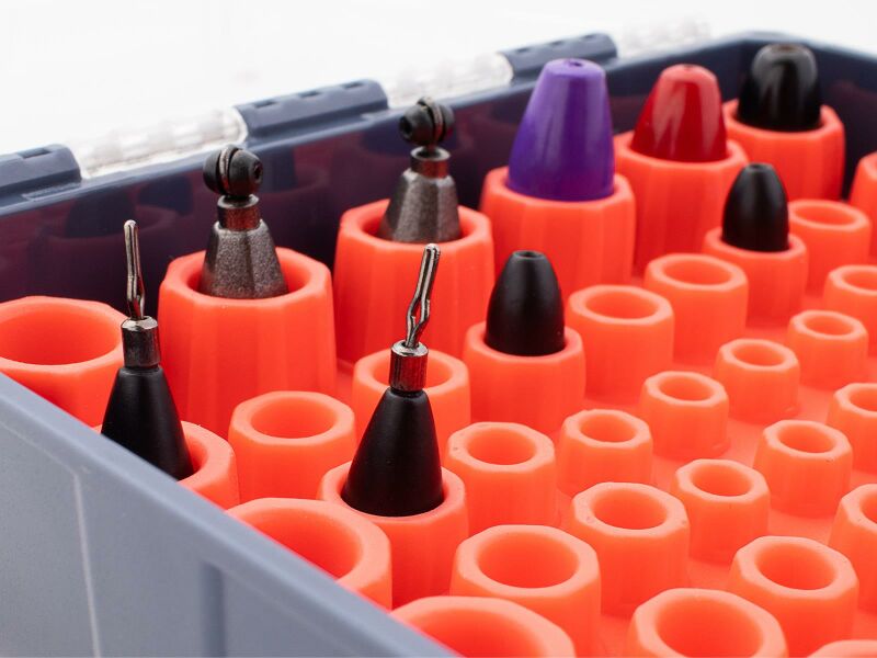 Gruv Fishing's Tungsten Vault offers reliable storage for 50 drop shot and bullet weights of 1/16 to 1.5 oz. Soft silicone docks securely fix each individual weight. Coated tungsten won't suffer paint...