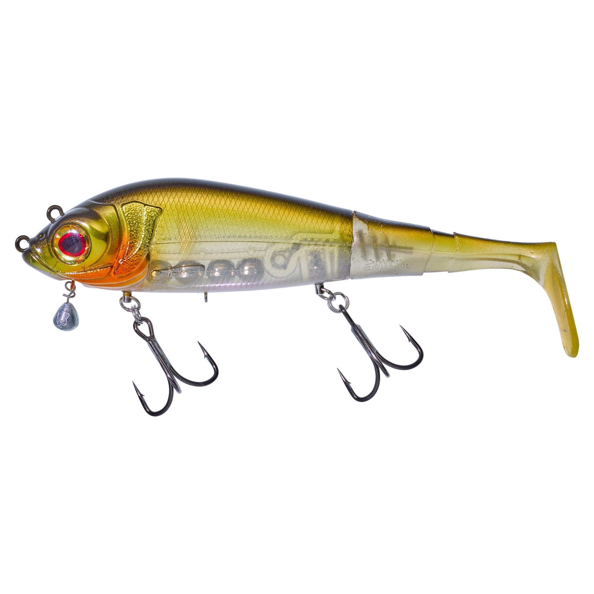 The Gunki GROUPER 180 S is a cutting-edge hybrid lure perfect for pike fishing. Made with durable ABS plastic, it comes with a standard paddle-style tail and the option to purchase a separately sold sickle tail. Originally Gunki GROUPER 180 S designed for shallow water, the Grouper 180 S can easily be adapted for deeper waters thanks to its versatility. With two attachment points on the beak, you can control the swimming depth by attaching to the mouth or above the head. Additionally, there are two attachment loops on the belly for adding Gunkin's CLIP WEIGHT for even more customization. The Grouper 180 S is also easy to cast, easy to catch, and highly effective at attracting pike. It boasts great colors for Nordic pike fishing, two fastening loops for adjusting depth, and innovative rotating hook attachments for secure fish retention. The lure also features interchangeable tail options and high-quality chemically sharpened hooks.