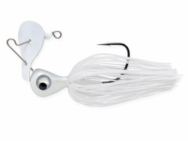 The Rumblade Jigs, developed by KEITECH, features a unique blade attachment design that allows for immediate blade play when submerged. The Keitech Rumblade wire attachment keeps the blade in the optimal position, allowing for provoking bites even in small gaps. Additionally, the fixed range of movement prevents the jig from tipping over during fast bait guidance. The wire also allows for snag-free use, making it ideal for fishing in otherwise difficult water sections. The rigid blade ensures seductive tumbling to the bottom, increasing the chances of bites. Furthermore, the blade attachment transfers movement to the entire bait, including the skirt and trailer, resulting in excellent play. KEITECH has designed the blade placement to hit the jig head and attached a brass bead to the wire, creating a crucial sound for attracting fish. The Rumblade Jigs also come equipped with high-quality silicone skirts, a matching trailer keeper, and specially-made hooks by DECOY.