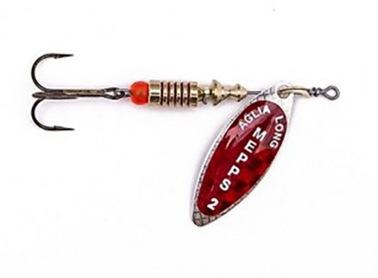 All Mepps Aglia Longs are deep-running spinners with willow leaf blades. The Mepps Aglia Longs Redbo blade "hugs" the body of the spinner during retrieval, allowing it to stay in deep pockets long enough to attract a wide variety of fish.
