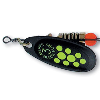 The Mepps Black Fury, equipped with a plain treble hook, is a top-performing Mepps spinner. Mepps Black Fury's unique Black Fury blade rotates closer to the body compared to the classic Aglia blade, allowing for easy fishing in shallow to mid-depth waters. Not only is the Black Fury effective in low light conditions, but it also stands out in bright and sunny weather, perfect for attracting fish in various water and vegetation conditions. Whether you prefer a plain or dressed Black Fury is a matter of personal choice, popular among panfish and bass fishers alike, while trout and salmon enthusiasts opt for the plain treble hook version. Whichever you choose, the Black Fury is guaranteed to deliver impressive catches of a wide range of freshwater species.