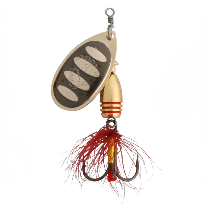 Thousands of hours of testing have enabled the Rotex Spinner to achieve optimum shape. This lure's rotation is widely acclaimed in fast-moving rivers, streams and stillwaters, exhibiting superb performance even at low speeds and upon impact. Each Rotex Spinner is a unique, hand-painted work of art, featuring customized Japanese treble hooks that have been rigorously tested.