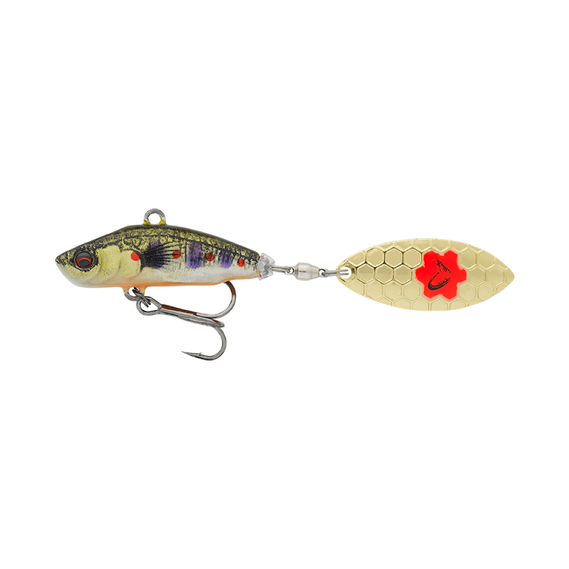 The Savage Gear 3D STICKLEBAIT TAILSPIN is a long-casting lure optimized to catch predators like perch, asp, trout, pike and bass. Its versatile action is highly effective on both the drop and retrieve, featuring a slight vibration and flash to trigger strikes. Its tail blade begins to turn as soon as it hits the water, allowing for adjustable speeds and tight line drops to attract more fish.