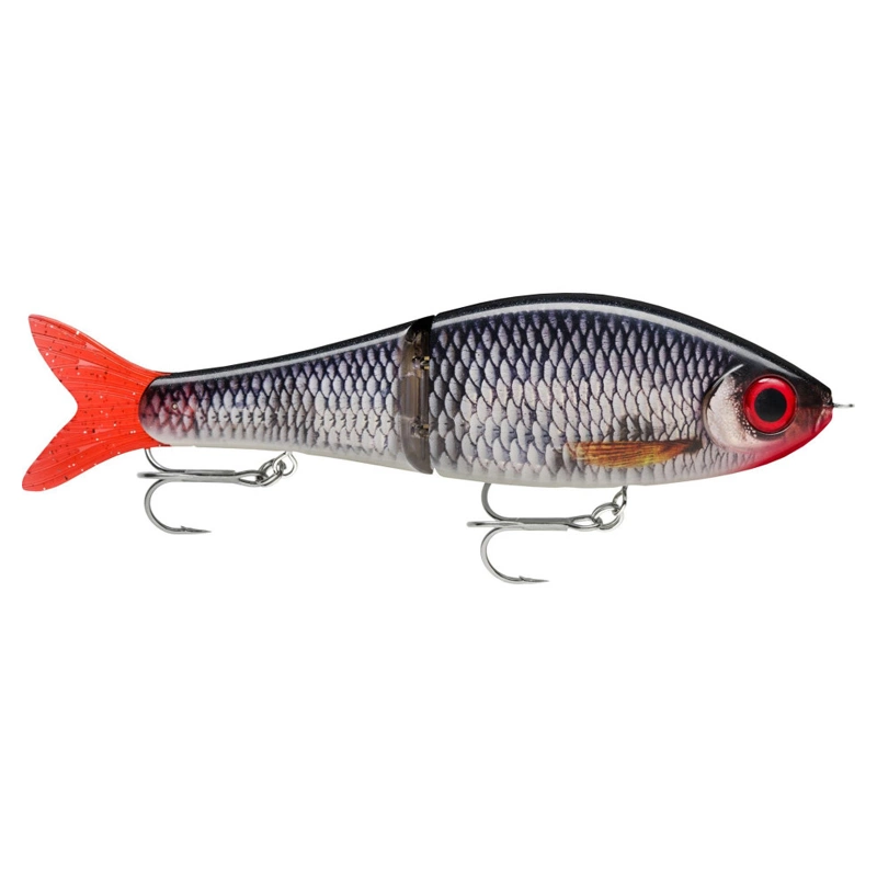 The RAPALA Super Shadow Rap Glide jerk effortlessly moves in a fish-attracting S-pattern, but that's only the beginning. Super Shadow Rap Glide has an innovative Screw Diver System (SDS) that allows for easy weight modification with interchangeable tungsten weights, giving you complete control over the swimming depth. With a simple screw-on and off design, this jointed swimbait offers adaptability like no other. Additionally, it comes with a spare tail so you can choose between realistic and aggressive colors. On steady retrieves, the Super Shadow Rap Glide exhibits a slow S-pattern swimming action, while twitching causes the lure to make quick turns. To increase your chances of landing your catch, the swiveling hooks are strategically placed. For those looking for a deeper swim, extra Screw Diver System weights are available for purchase. This lure also features life-like swimming action, heavy-duty split rings, and VMC® 8651BN/4551BN treble hooks. It's sinkable and comes in two sizes: