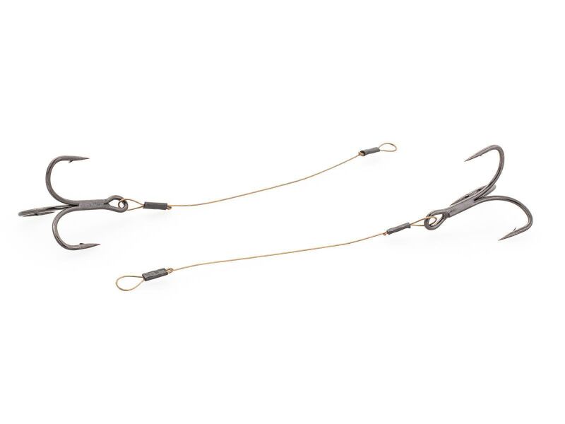 The VMC 19 Wire Stinger is a short leader designed to outfit soft lures with an additional treble hook. VMC Series 75 treble hooks and brown matt 1x19 steel leader provide a...