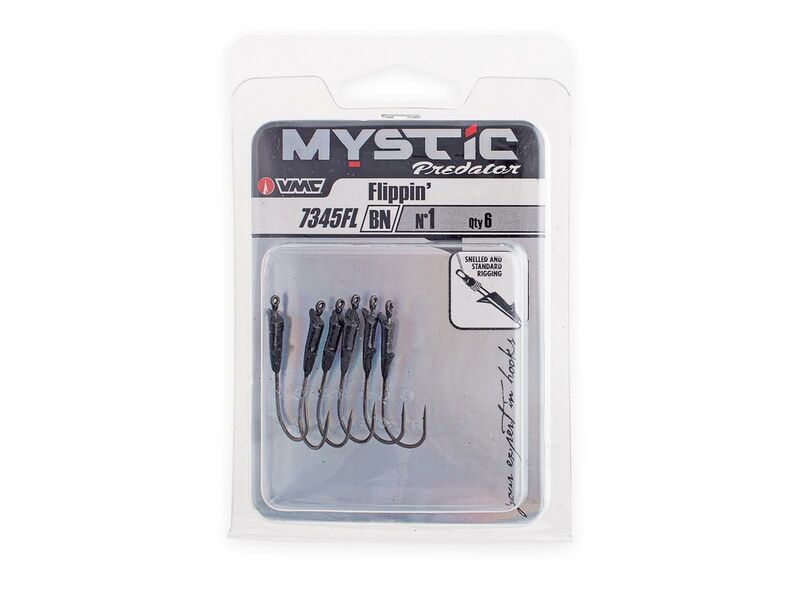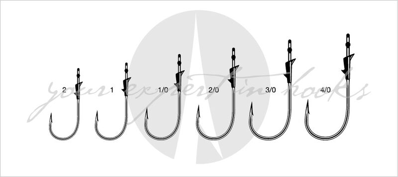 The VMC Flippin hooks (7345FL) have a special plastic bait holder on the hook shank to hold softbaits reliably & catch-ably in position. This is important when flipping crayfish and creature baits, but also makes these hooks a very good choice for the Cheburashka rig. The chemically sharpened hook tip, the closed eye and the stable round bent hook are further positive features of the VMC Flippin hook