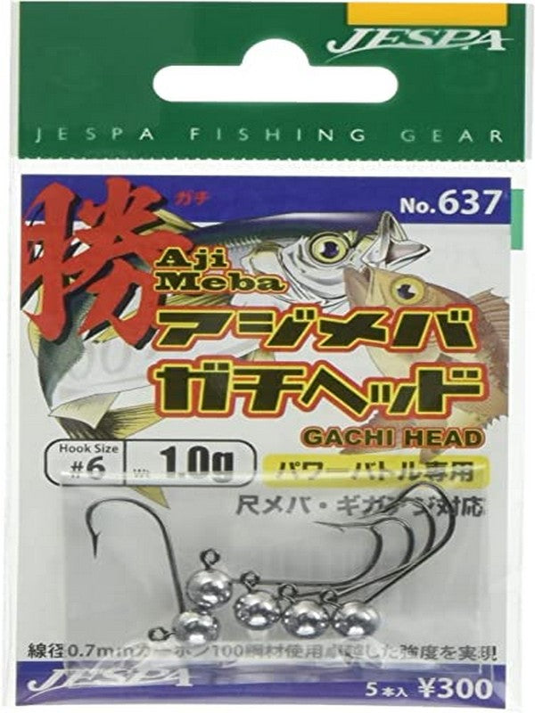 These Yarie No. 637 Aji Meba Gachi JH jig heads are available in weights of 0.4, 0.7, and 1g, equipped with hook #6. For those seeking a heavier option, the Yarie No. 639 Aji Meba Gachi JH jig heads come in weights of 1.8, 2.5, and 3.2, with hook #4. Both options come in a convenient pack of 5, making it easy to stock up for your next fishing adventure.