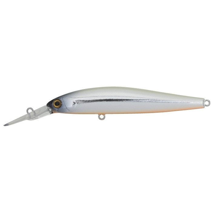 For big trout this is a slow sinking minnow with the advantage of long casting ability and depth range by using a medium long bib for perfect control, until now this was only possible with metal spoons. This model was born for Big River Minnow Game. An active swimming action with a wobble and roll that with rod work it will instantly dart. Looks like a bewitching and dashing model on a runway.