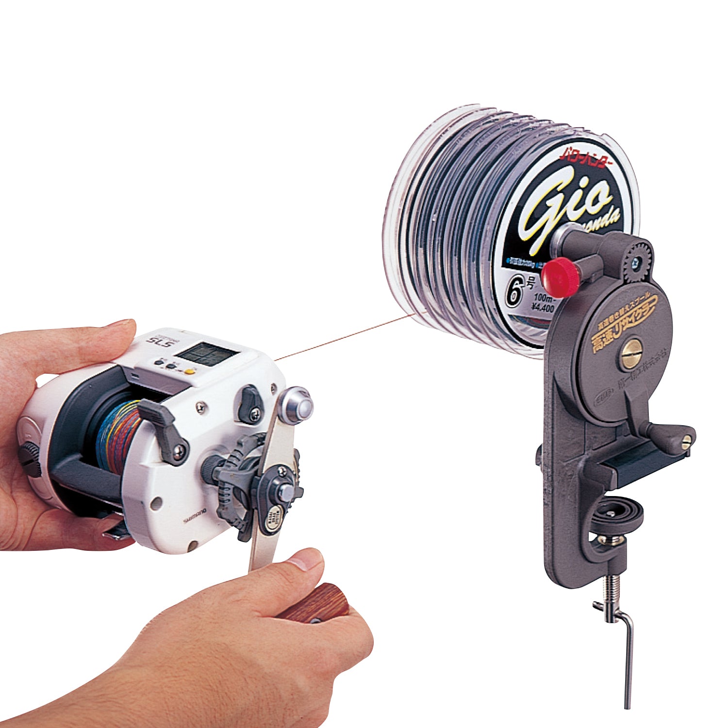 DAIICHI Kousoku Recycler allows for quick winding of the reel line onto an empty spool, making it easy to adjust the tension before storing and rewinding. It is ideal for winding a new line onto a reel and can be securely clamped onto a desk or other object. Thanks to its 3.5x speed handle, it enables speedy use.