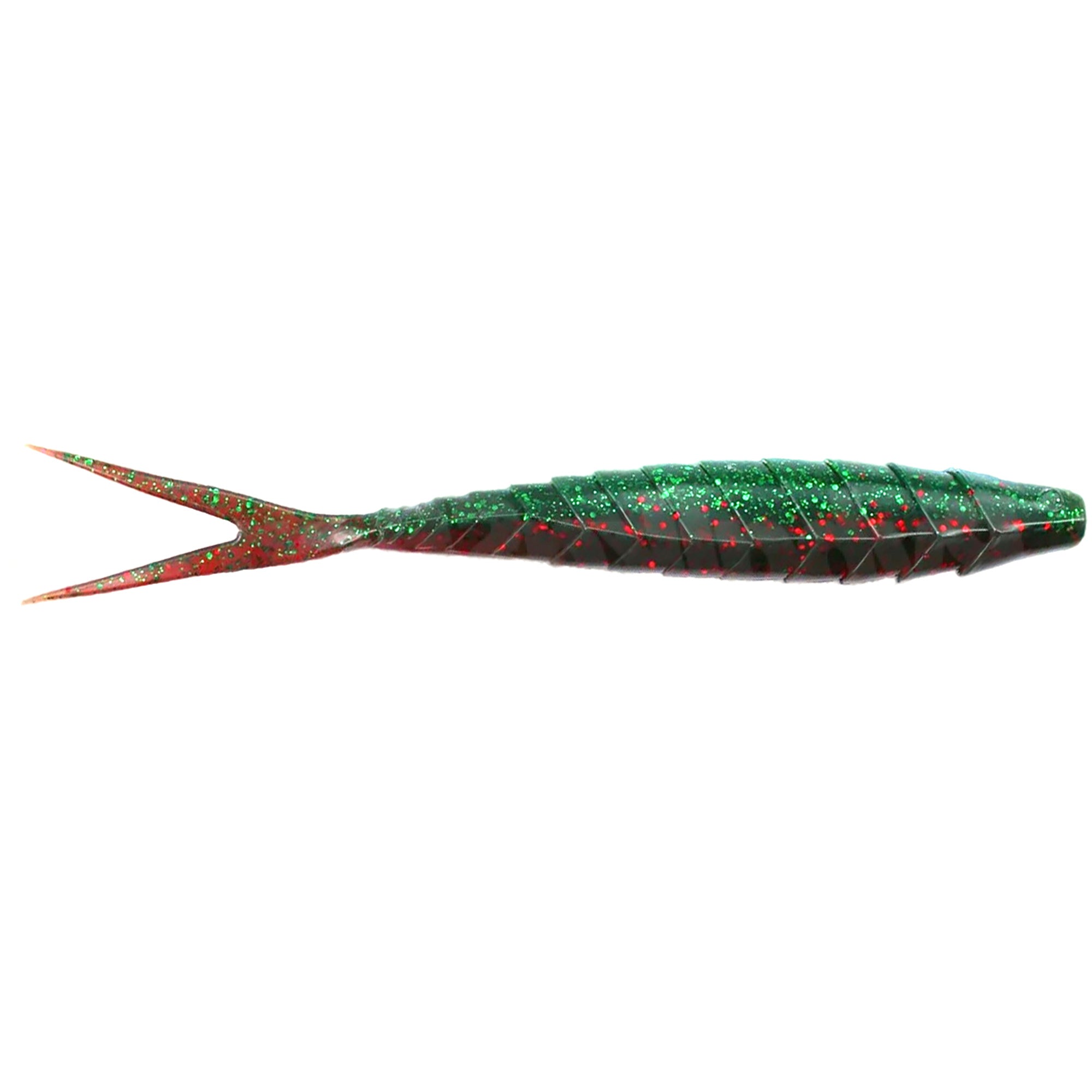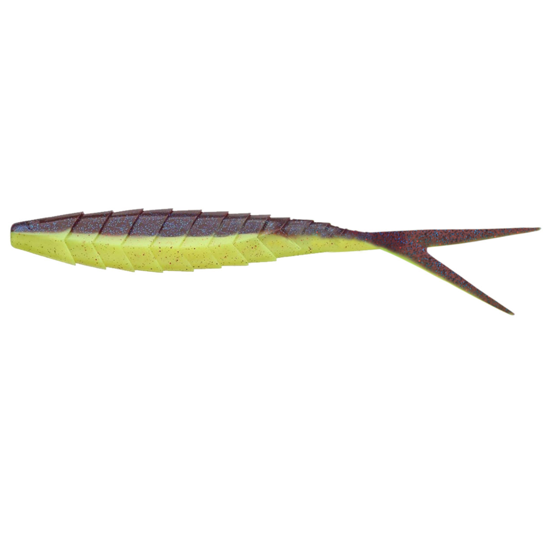 Gekoslug is a lure with a rounded front part in section, a relief ‘scaly’ surface and a flexible V-shaped tail.