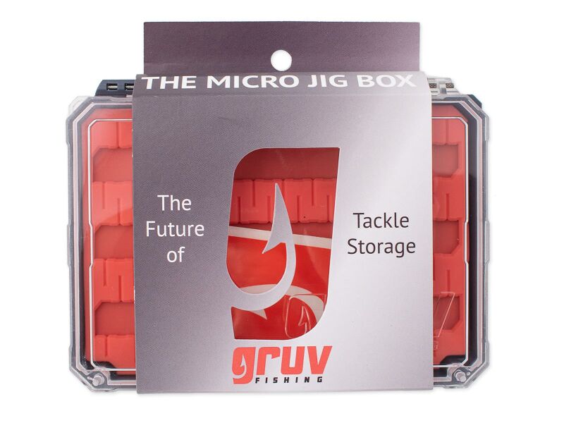 Up to 72 small jigs and hooks fit in the Gruv Micro Jig Box, held in place by patented silicone inserts. This box offers protection for sensitive hardbaits, tungsten weights, spoons, jigs and more. Made of impact-resistant plastic, reliable hinges, and a clear lid, this box keeps bait and small parts organized while preventing paint damage and chaos. With dimensions of 12.7cm x 10.2cm x 2.6cm, the box is secured with neodymium magnets.