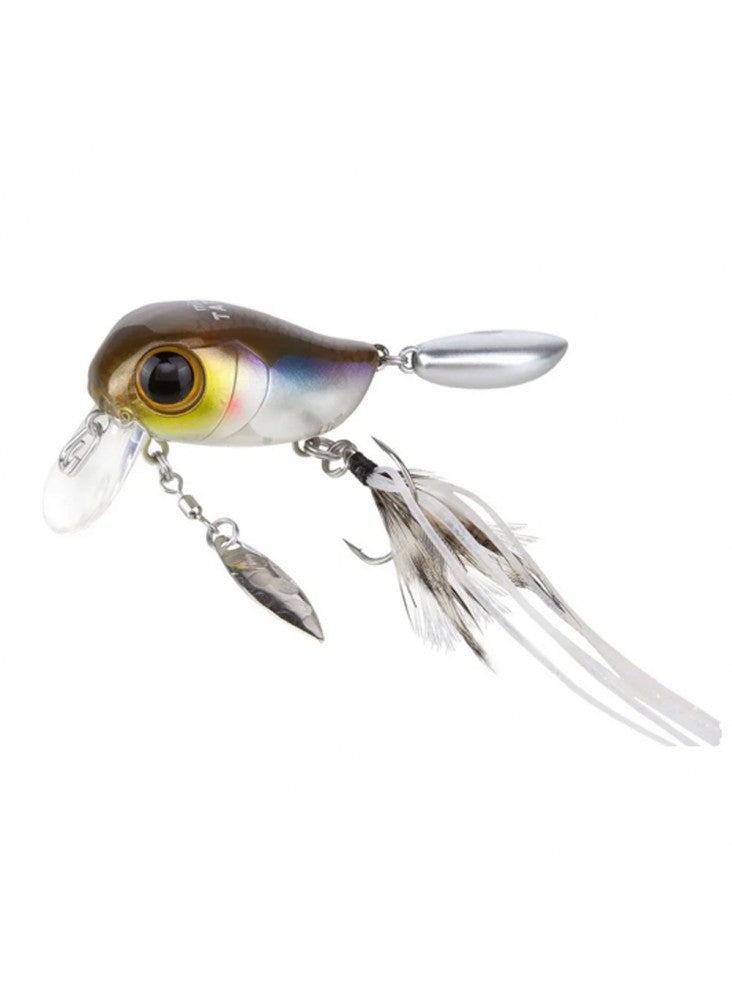 This surface wake bait can be easily activated by simply casting and reeling, and the bites can be seen with the naked eye. It has been micro-sized to produce consistent results even in high-pressure fields. The blade attached to the abdomen and the buoyant flashing tail create complex vibrations and flashing like a school of small fish, inviting bites.