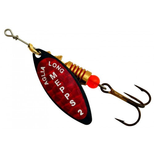 All Mepps Aglia Longs are deep-running spinners with willow leaf blades. The Mepps Aglia Longs Redbo blade "hugs" the body of the spinner during retrieval, allowing it to stay in deep pockets long enough to attract a wide variety of fish.