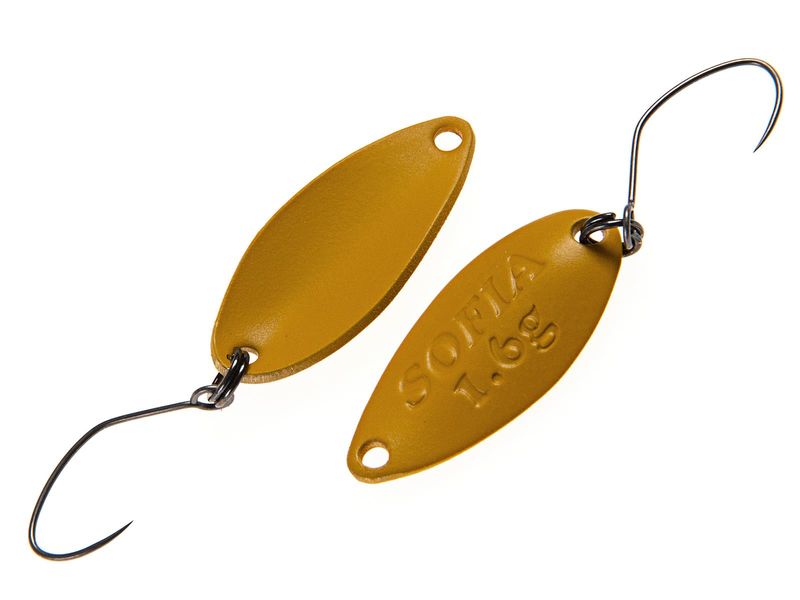Spoon for trout fishing and other small predators. Nories Masukuroto Sofia 1.6g This spoon is designed with a small profile to mimic the size and motion of prey. Perfect for catching trout and other small predators, it will help you reel in the big one. Its light weight ensures it won't sink too far, making it great for fishing in deeper waters or in slow-moving boats.