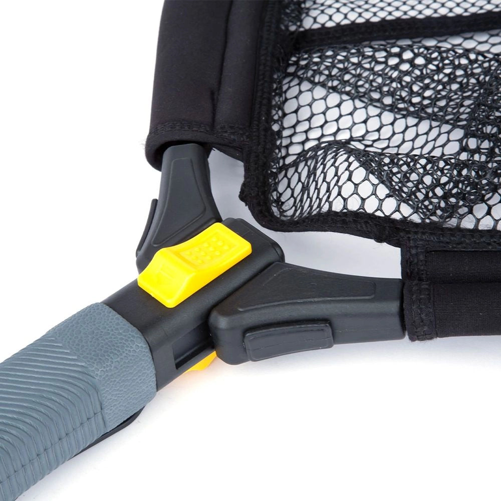 Expertly designed for wading, the Shimano YASEI Single hand rubber net is the perfect choice for smaller freshwater predators. Its lightweight frame and tough PVC mesh, coated with rubber, minimize hooks snagging. With a 50cm x 40cm hoop and 60cm depth, this net can be clipped onto a belt and operated single-handedly. Its aluminium handle can be conveniently stored in the frame, making it easy to move around in the water without distractions.