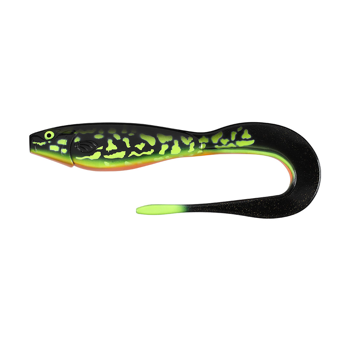 Frapp Tricky Tail silicone lures are built for trophy predators with a long, strongly bent tail and an extended “edge” on its inner side. Its vibration is clear and stimulating and it operates at medium to high speeds. Made of durable plastic, it features a triangular shape with a narrow back and broad base, resulting in the center of gravity being shifted to the bottom, making it more efficient while rolling. If you add a small tee to the widest point, it will lessen the number of hooks needed when fishing in vertically oriented vegetation. This innovative design also helps boost the effectiveness of active jigging, making it an excellent choice for serious anglers.