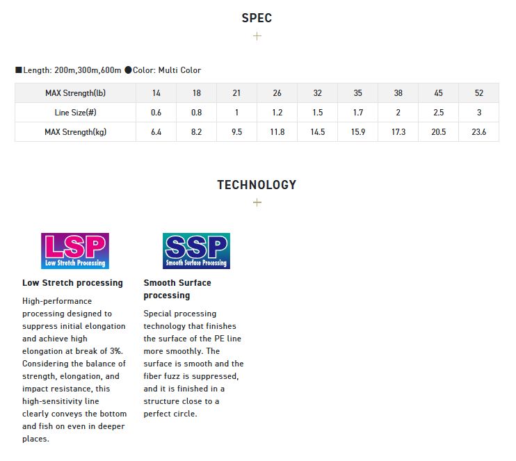 Thanks to the proprietary Low Stretch Processing (LSP), this line limits initial stretch to approximately 3%, providing extremely high responsiveness—even at depth, where detecting subtle bites is crucial.