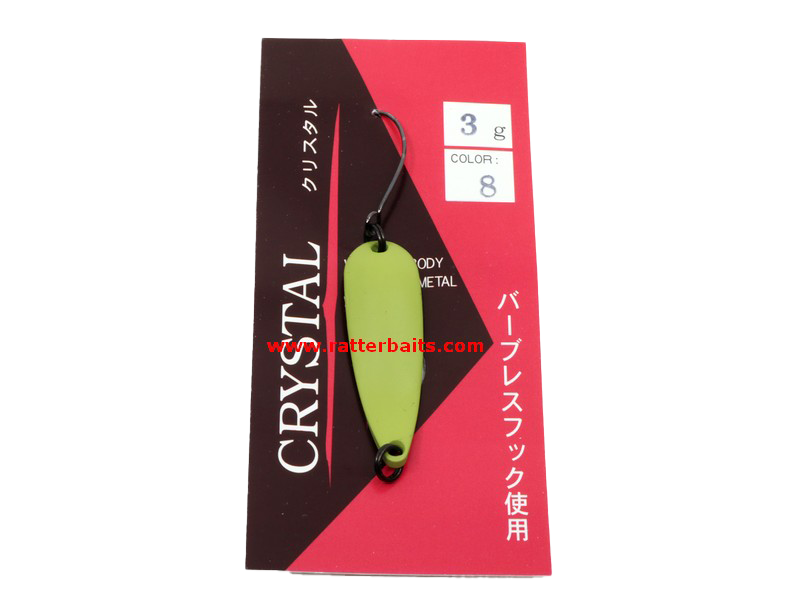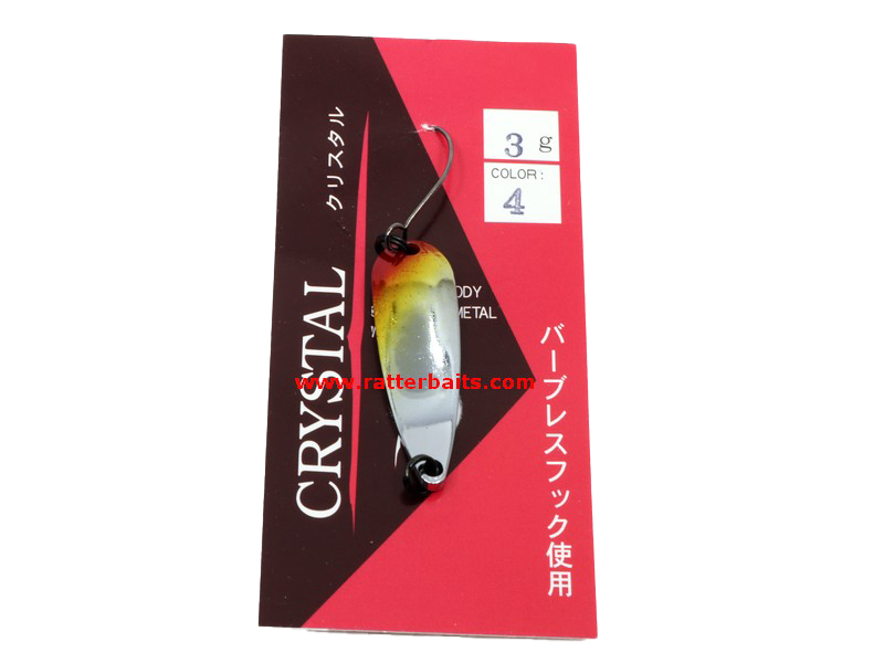 от японского производителя отличается выверенной формой, продуманным дизайном, качеством материала. Модельный ряд насчитывает несколько вариантов расцветок, для разных условий ловли и видов рыб. Серия Crystal имеет так же несколько вариантов по размерам и весу. Форма лепестка спроектирована таким образом, чтобы разнообразить поведение приманки при проводке, привлечь как своей отражающей способностью так и игрой.