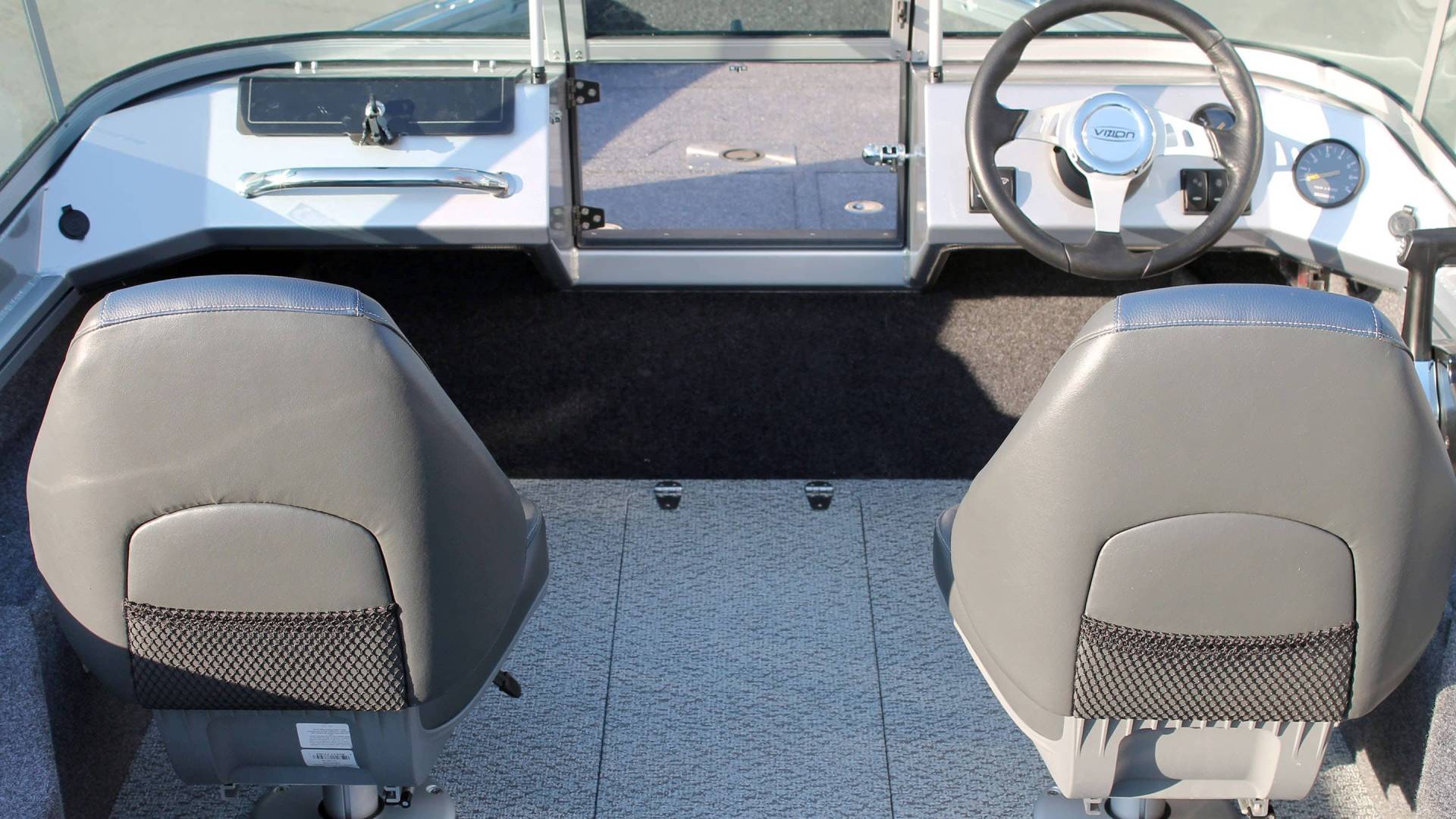 Visu laivas VIZION 470s iekšējo un ārējo virsmu apdarē izmantots īpaši jūras transportam paredzētais VENUS 437 SPACE klases mīktais grīdas segums (kovrolīns). Tas ir mitrumizturīgs un nav pakļauts ultravioleta un citas agresīvas vides iedarbībai. Viegli mazgājams, ātri žūst un ilgi saglabā savu sākotnējo izskatu. Bez īpašām rūpēm no tāvar nomazgāt jebkura veida netīrumus automazgātavā, izmantojot augstspiediena tīrītāju. Pēc klienta izvēles klāja apdare var būt izpildīta MariDeck vinilā.