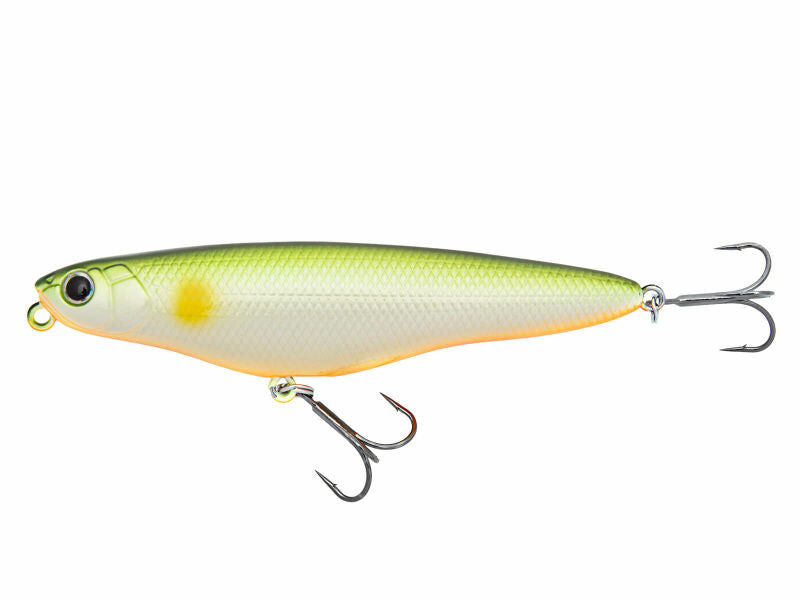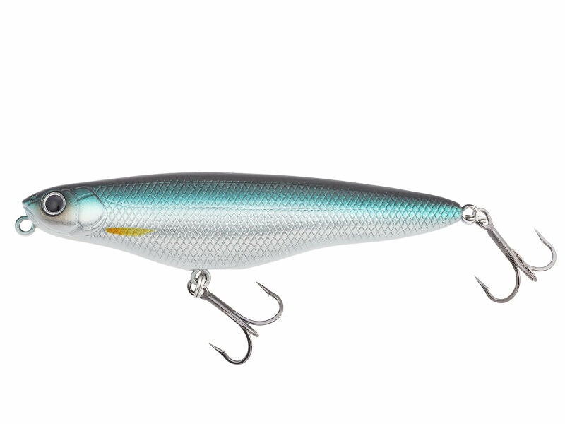 The NORIES Upper Cutter 95 (43M) 10.8g is a topwater lure designed to run zigzag on the surface with light tugs. Its shape and two metal balls (fixed in the front and movable in the rear) enhance the action, causing splashing sounds and rattle to attract predatory fish like asp, perch, and pike. This premium lure features a state-of-the-art design for superior motion and visibility, along with an enticing sound and rattle. It's the perfect way to target larger prey.
